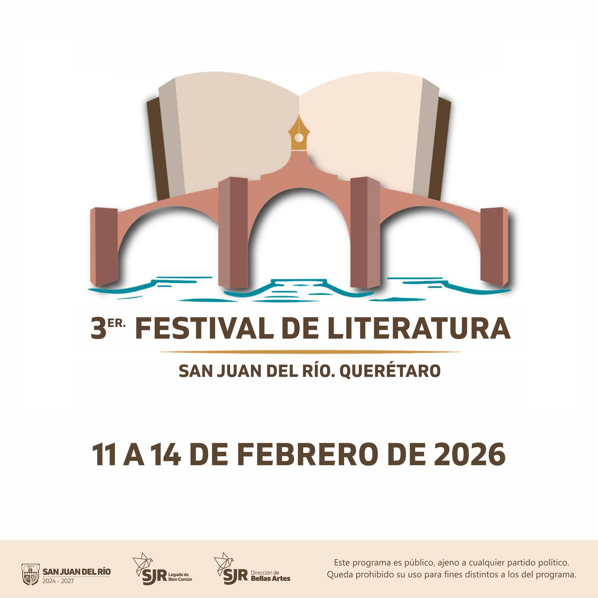 ¡Llega el 3er. Festival de Literatura de San Juan del Río, Querétaro, que se realizará del 11 al 14 de febrero de 2026! Próximamente publicaremos el programa general de eventos. ¡Un festival imperdible!