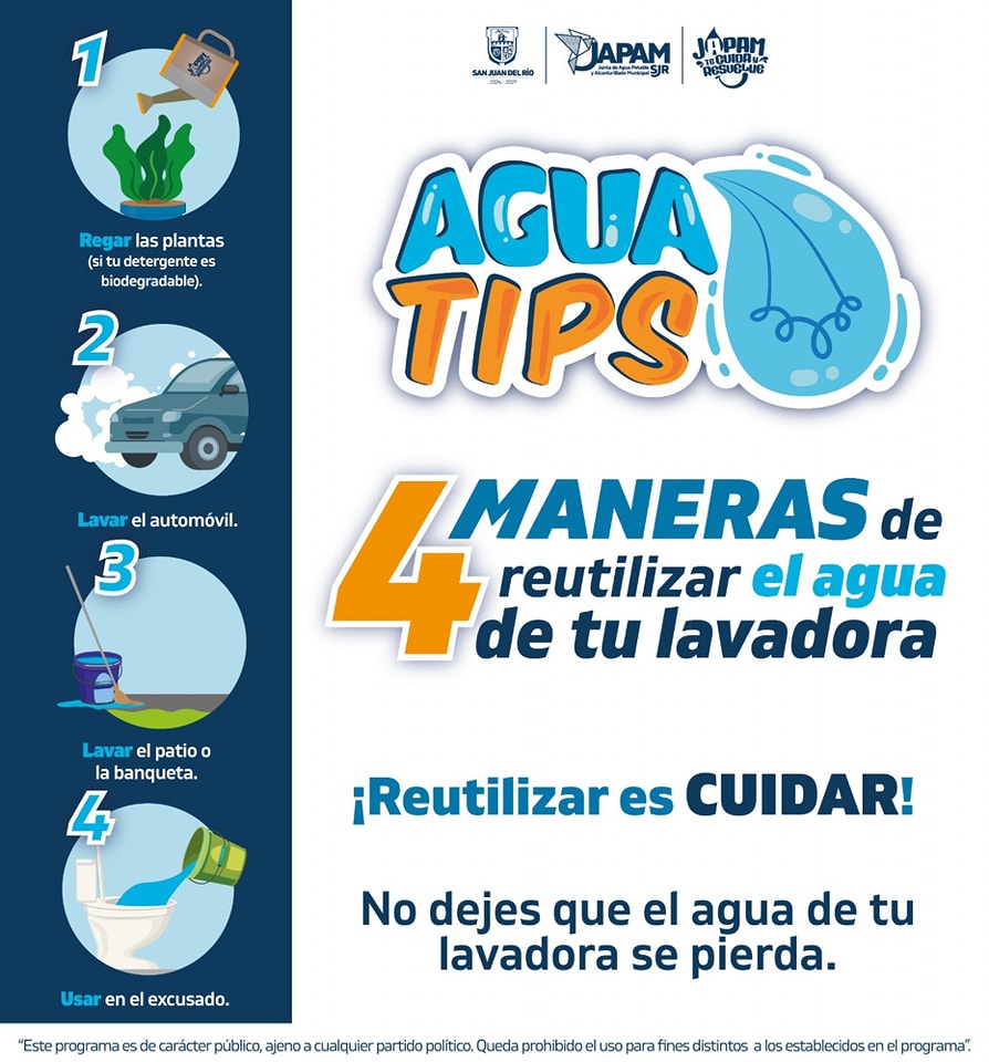 Reutilizar el agua de la lavadora es una excelente forma de ahorrar agua y reducir el impacto ambiental. Aquí te presentamos cuatro maneras de reutilizar el agua de la lavadora. Regar las plantas Limpiar la casa Lavar el vehículo Llenado de depósitos de agua. #JapamTeCuidaYResuelve Navegación de entradas Imágenes que han sacudido las redes socialesMantequillas que NO fueron aprobadas por la Profeco