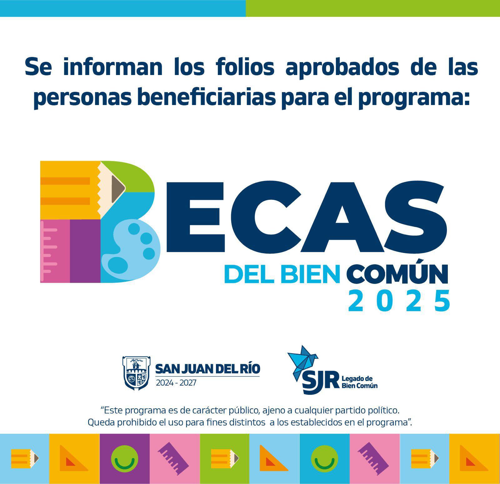 ¡La Secretaría de Desarrollo Social de San Juan del Río informa que ya se encuentran disponibles los resultados del programa de Becas del Bien Común 2025! Agradecemos la participación de todas y todos los estudiantes que aplicaron. 📚✅