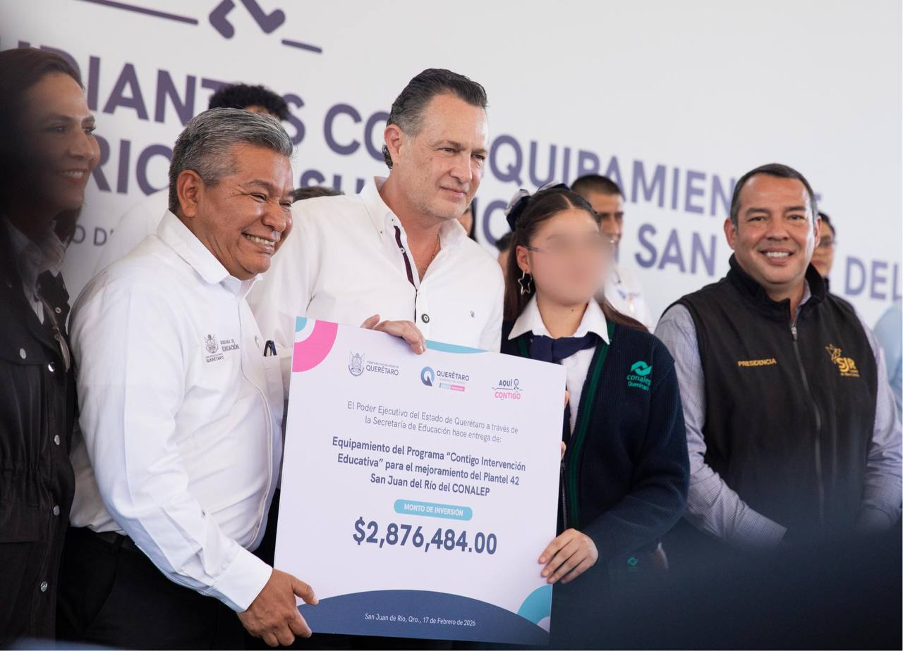 Junto al presidente municipal Roberto Cabrera Valencia, el gobernador Mauricio Kuri entregó equipamiento, como parte del programa “Contigo Intervención Educativa”, así como mejora de infraestructura para la educación media superior y superior en el municipio.
