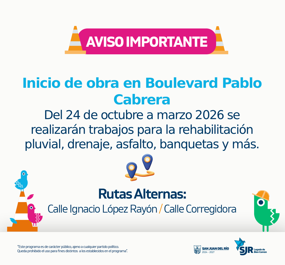 Importante aviso vial, cierre temporal de vialidades por mantenimiento