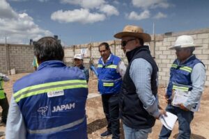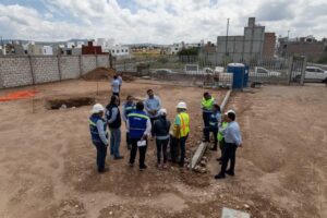 El director de la Japam, Toño Pérez junto con parte del equipo, realizó un recorrido de supervisión en la obra del tanque de almacenamiento Lomas de Banthí, una infraestructura que beneficiará a las familias sanjuanenses de esa zona.
