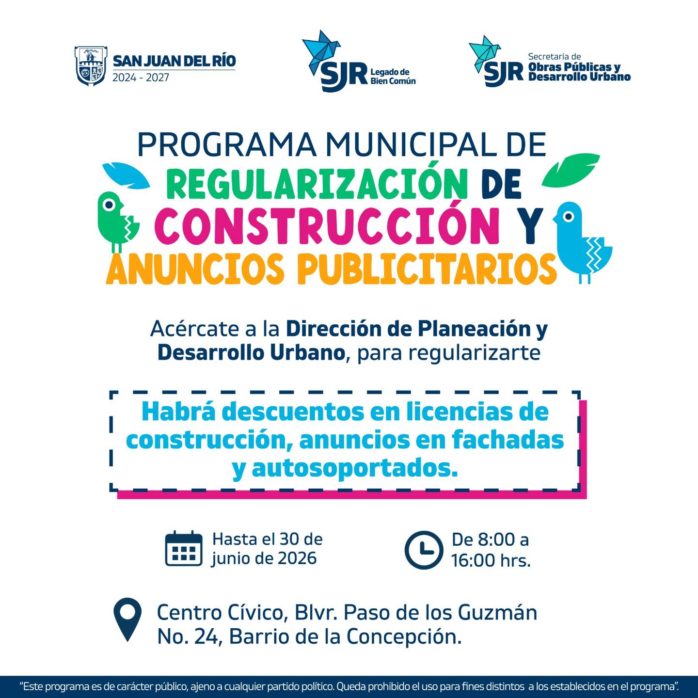 Aprovecha el Programa Municipal de Regularización con descuentos en licencias de construcción y anuncios.