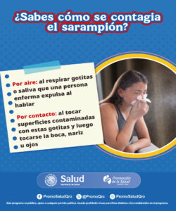 El sarampión es una infección viral altamente contagiosa causada por el virus del sarampión (Morbillivirus), se transmite principalmente por gotas respiratorias cuando una persona infectada tose, estornuda o incluso habla, lo preocupante es que el virus puede permanecer en el aire o sobre superficies hasta por dos horas, lo que facilita su propagación.