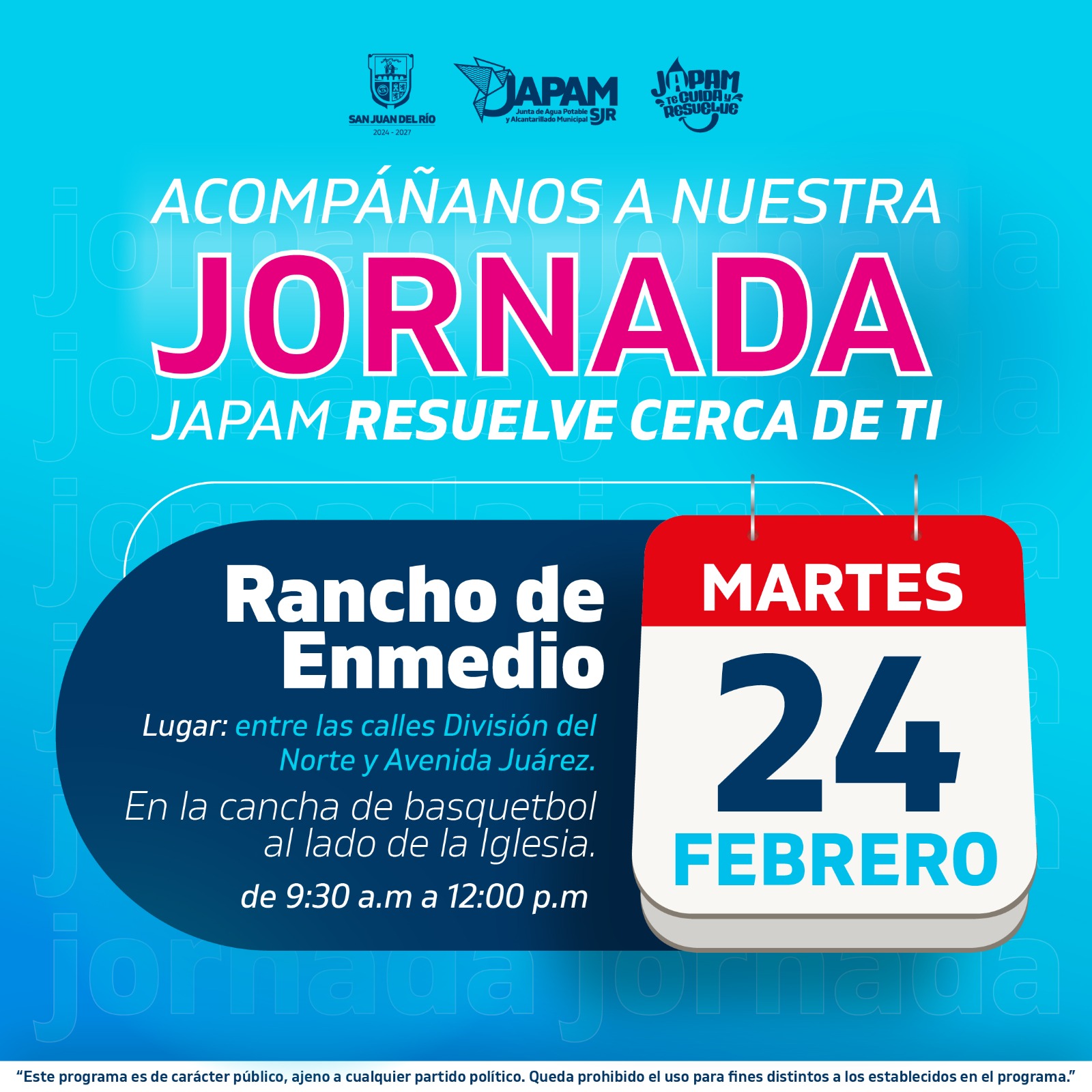 Tercera Jornada “JAPAM Resuelve Cerca de Ti”, que en esta ocasión llegará a Rancho de Enmedio.